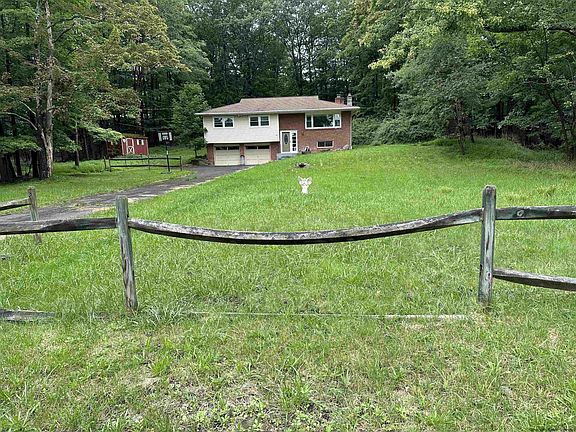 Nestled among rock ledges just minutes from the village of Woodstock. This 4 bedroom 2 bathrooms home offer privacy, yet convenience. 5 minutes to the village of Woodstock, minutes to Kingston, Skiing, Ashokan Reservoir and Rail Trail. The property is mostly level with beautiful rock ledges and mature trees to add to the privacy and peacefulness to the property. Inside, this spacious home has skyline windows in ceilings, hardwood floors, formal dining room, beautiful 2 fireplace, spacious living room with large windows and a huge family room. The Bedroom/office on the first floor can also be used as a pantry or additional bedroom. 2 huge car garages Come take a look at this rare find before it gets away. The sale is AS IS condition.
