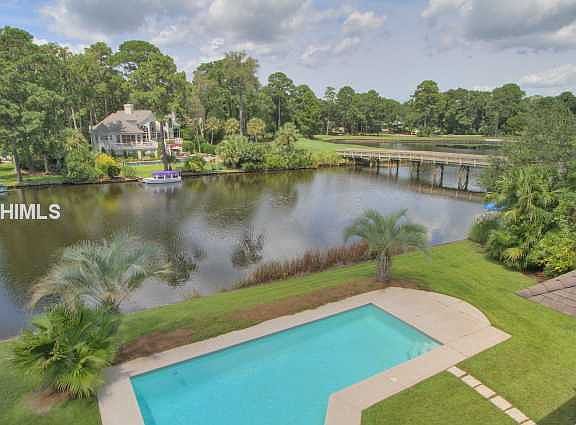 One of the Best View Locations in Leamington! This home has a beautiful lagoon & golf setting and features 4 Bedrooms, with two master suites, 4.5 baths, elevator, study, heated pool, and sauna. There is even an office off the first floor master suite. The pool is located on the waters edge of the expansive lagoon. Leamington is a private gated golf community. The beach is just a quick golf cart ride away! Plans available for expansion of kitchen & family room. #(0809121)