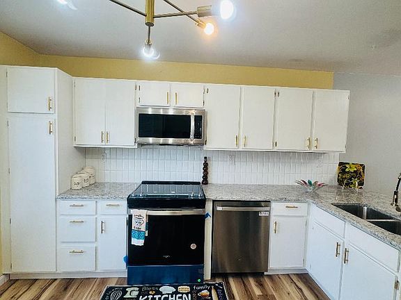 Beautiful townhome in Newark’s desirable Wellington Woods neighborhood! This newly updated 3-bedroom, 3-bathroom townhome combines modern luxury with comfortable living, creating the perfect space for any lifestyle. As you step inside, the open-concept main level immediately impresses with its abundant natural light. The contemporary kitchen features sleek stainless steel appliances, premium granite countertops, and a complementary backsplash. The dining and living areas include a fireplace and sliding patio door to rear deck and fenced in backyard. This welcoming layout is ideal for both casual daily living and entertaining guests, with a convenient powder room rounding out the main level’s functionality. On the top floor, the primary suite serves as a private retreat, complete with an updated bath including tiled walls and marble vanity top. The second and third bedrooms on same level are is equally inviting and has full bathroom in the hallway. The finished basement is spacious and has access to outdoor, recess lights and can be perfect space for a media room, family room, or playroom, along with a large laundry area to simplify your daily routine. Step outside to the nice deck with level fenced yard. This home is move-in ready with recent updates including brand-new water proof luxury vinyl flooring throughout, fresh neutral paint, a new architectural shingled roof 2025, and modern appliances. Conveniently located near major highways, shopping and dining areas. Don’t miss out on this exceptional opportunity to own this beautiful home in a prime location!