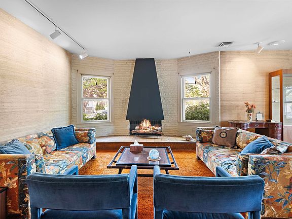 A welcoming front porch leads into the first floor, where high ceilings, a cozy living room with a decorative fireplace, and wide windows creates an inviting space. The separate dining room flows into a kitchen with plenty of cabinets, while the nearby family room—complete with exposed beams, a skylight, and park views—makes this the perfect gathering spot. Glass doors open to a deck surrounded by greenery, with easy access to your parking space.