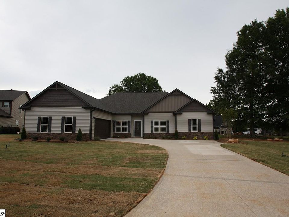 ONE LEVEL HOME-NO STAIRS! Split bedroom floor plan offering a formal living/office/library with double door entry. Formal dining room with chair rail for entertaining. Vaulted ceiling in the living room features gas log fireplace and French doors to the patio. Open kitchen with granite counters, stainless steel appliances, and sunny breakfast area. The split bedroom plan allows the master suite extra privacy. His and hers walk in closets, double sinks, and a jetted tub. Hardwood and ceramic tile floors through main traffic areas with carpet in the bedrooms. Sought after Blue Ridge Schools to boot!