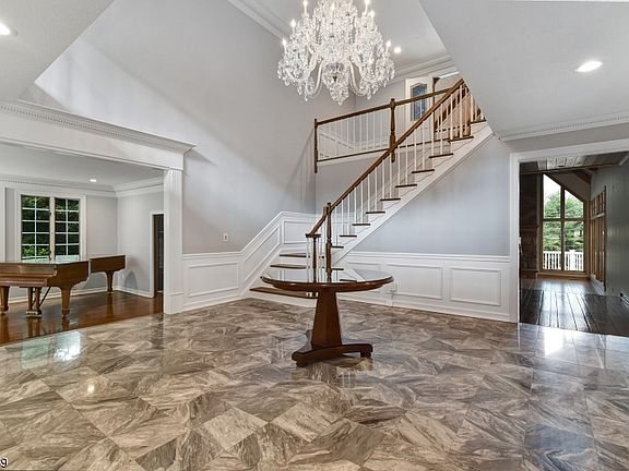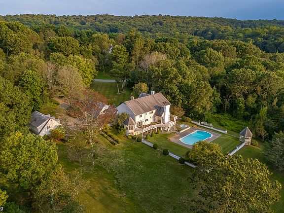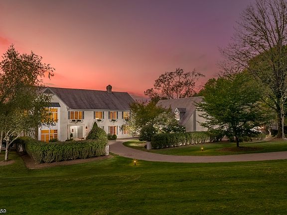 Exceptional Luxury Manor Home An exceptional custom-built luxury residence in a prime location is set on a picturesque cul-de-sac neighboring the Roxiticus Golf course and the Bernardsville Mountain. Sited on 5.34 serene acres, this light-filled home with endless vistas and fine finishes combines formal French architectural influences with contemporary large-scale entertaining spaces, creating an unparalleled estate. The home is nestled on a plateau with professionally landscaped gardens and greenery. A circular drive leads to the elegant paver courtyard with porte-cochère, detached three-car garage, additional carriage house with three-car garage and upstairs guest suite. The grand two-story foyer gleams with a Swarovski crystal chandelier and gray marble floors. It is surrounded by the formal living room with box bay windows and marble fireplace which adjoins the custom wood-paneled library, formal dining room, formal powder room and great room with vaulted, wood-beamed ceiling, floating bar and fieldstone fireplace. The spacious first floor continues with a full bath and the kitchen wing. Inspired by Michelin restaurants of France, the gourmet kitchen boasts multiple ovens, cooktops, dual sinks, a wine refrigerator and double-door Sub-Zero refrigerator and freezer. It adjoins a breakfast area, sunroom and laundry room. An expansive deck spans the entire back of the first floor, creating an ideal venue for indoor/outdoor entertaining. This sixteen-room residence is appointed with intricate millwork, custom woodwork, paneling and high-grade materials throughout three finished floors. Oak, marble, Terracotta and clay Provence tile provide the details that significantly distinguish this beautifully appointed Manor home. In addition to a grand master bedroom suite and bedrooms with updated en suite baths, there are extraordinary additional multi-purpose rooms which can be used for an au-pair or in-law suite. The lower level presents French doors with full walkout access and includes a family room with pub, game/billiards room, sitting rooms, full bath, exercise room, storage rooms and a 1,000-bottle wine cellar. Guest accommodations in a detached carriage house feature a one-bedroom suite with a full kitchen, living room, dining room and updated full bath. Outside amenities include bluestone patios, a separate spa and a pool area with an accompanying gazebo and wide paver patios. Courtyard walls surround the pool and established perennial gardens.