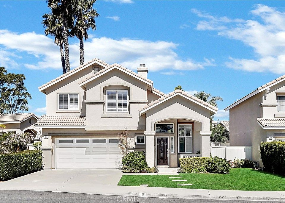Within the beautiful Summerview community of Foothill Ranch lies a Mediterranean style, comfortable living home at 19 Balise. Upon entering the home, first impressions are given to the spacious floorplan, natural light abundant through dual pane windows and sliders, and high ceilings greeting entry. The living & dining room is a great space to have parties or quaint family get togethers. The white and bright kitchen with stainless steel appliances and cozy breakfast nook marry food and fun in one space. Upstairs, the primary suite serves as a respite for the owners. Once inside, a spacious room is combined with the walk-in closet, as well as the updated primary bathroom a brand new dual vanity to offer class and convenience. Two additional bedrooms can be found upstairs, sharing a bathroom for the two. Back downstairs and outside, with concrete and terra cotta tile adding to the Mediterranean appeal, while mature vegetation and room to garden complete the peaceful sentiment found, and a private one as well, to complement a SoCal lifestyle. Enjoy space for al fresco dining and space to entertain. All of this could be yours, and soon you could find yourself residing near all things Foothill Ranch: parks, award wining schools, shopping, dining, medicine, mountain biking, and great outdoor recreation in Whiting Ranch.