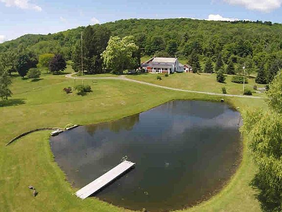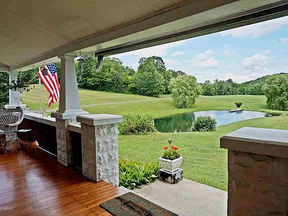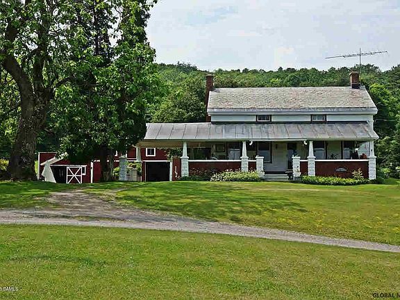 Privately situated on 50 acres of beautiful fields and woods, this vintage Cape offers 4 BRs and 3 baths. Spacious LR features a Vermont castings wood stove and hardwood floors.Kitchen has newer appliances and marble counters. The wide front porch offers views of the 10' deep stocked swimming pond and distant mountains. The main barn has garage, equipment storage and repair space, office space and stalls for your choice of livestock. It's been rewired and has water. Taxes w/o exempt. Includes TM#152-1-1.1. Land is now classified certified organic.
