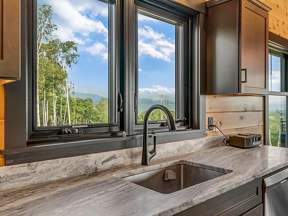 Perched above Rangeley with panoramic views that stretch for miles, this brand-new home offers peace, privacy, and year-round recreation on just over 4 acres. Featuring 3 oversized bedrooms and 2 full baths, the layout is ideal for both entertaining and relaxation. A grand entryway with a built-in bench and storage leads into an open-concept living space where every window captures stunning mountain and lake views. The kitchen is outfitted with stainless steel appliances, granite countertops, and modern earth-tone finishes, while sliding glass doors open onto a full-length deck perfect for taking in the scenery. A cozy propane fireplace in the living room adds warmth and charm. The first-floor primary bedroom provides convenience and privacy, with two spacious guest rooms upstairs. The walkout basement offers incredible flexibility—one side is ideal for dry storage or future finished living space, while the other has drive-in/drive-out access for all your mountain toys. Thoughtfully landscaped with stone walkways, perennial gardens, and surrounded by natural beauty, the home also includes a full-house generator for peace of mind. Whether you're boating on Rangeley Lake, snowmobiling from your doorstep, or skiing nearby slopes, this location is truly at the heart of Maine's four-season playground. A rare opportunity to own a mountain home with breathtaking views and unmatched versatility.