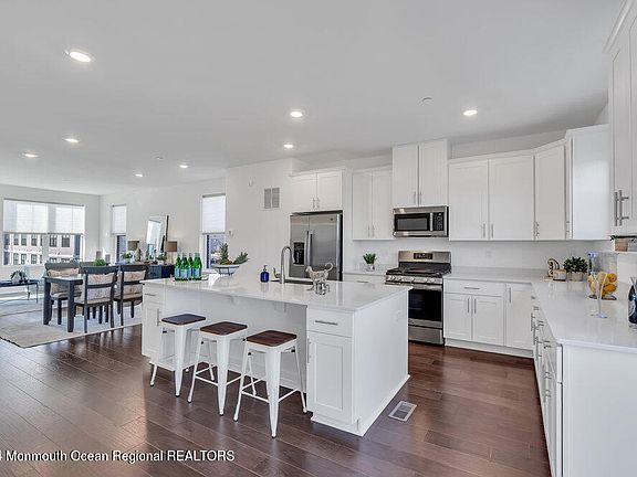 Welcome to the epitome of luxury living in the newly developed Patriot Square community of Northern Tinton Falls. This MOVE IN READY 3 story END-UNIT boasts 3beds & 3.5baths. The attached 2-car garage provides direct entry into your lower level walk-out flex room w/ private patio & full bathroom which can be transformed into an additional Guest Suite. Open concept main level showcasing a Chef's kitchen w/ 42'' white shaker-style cabinets, quartz counters, SS appliances, office nook & a walk-out composite deck. Extra wide plank hickory hardwood floors grace both the lower & main levels. Enjoy the luxury of 9' ceilings, automatic blinds & UV window protection. Top floor primary suite w/ walk-in closet & 2 guest bedrooms. The 12 by 24' tiles add a touch of elegance to the bathrooms. Smart home technology & a 10yr Lennar home warranty included. Lifestyle amenities: playground, volleyball court, dog park & snow removal. Close to GSP, RT18,35,36.