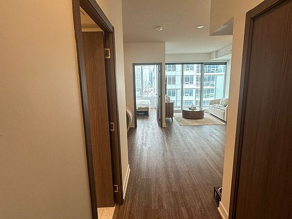 Beautiful and Spacious 1+1 Bedroom Unit with beautiful city views including CN Tower And Lake View. This suite offers a well-designed layout with 9-foot ceilings, abundant natural light from large windows, and premium finishes throughout. Enjoy an open-concept kitchen featuring sleek, built-in modern appliances. This unit combines comfort and functionality. Ideally situated in a prime central location close to TTC, shopping, dining, and entertainment.