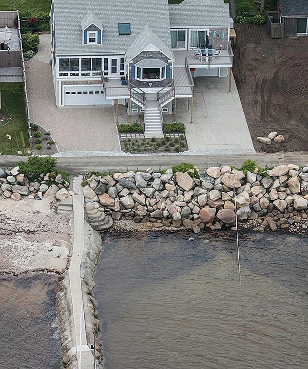 On the water! Classic Cape Cod with knotty pine interior, fully insulated and heated year-round home. Modern appliances. Elevator. Four-car storage or boats under. Three season porch on water side. Multiple decks with water views. House raised above flood zone with basement/garage and new plumbing/electric in 2012. Beautifully landscaped with patio and gardens. Exterior parking for six cars in addition to garages. Great for entertaining and large families.