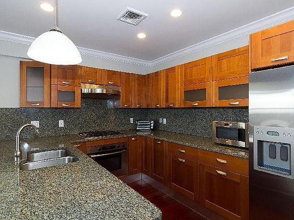Back Bay.... Bay State Road... Beautifully renovated entire floor Two Bedroom/Two Bathroom in elevator brownstone condominium building located steps to Kenmore Sq, Newbury St, Charles River, and Fenway Park. Majestic river views from four oversized windows in the expansive open living room with fireplace and custom light fixtures. Brazilian cherry floors throughout. Chef's kitchen with Bosch & Jenn Air appliances, gas cook top, cherry cabinets, granite counters and large island. Central air and heating. In-Unit laundry, Spacious master bedroom with great closet space and en suite bath with jacuzzi and granite tile. Large second bedroom and granite/marble tiled second bath. Full Parking Space included. Pets allowed with trustee approval. No smokers.