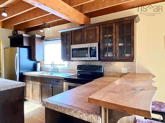 Ideally located in the heart of Summerville Centre along the coveted South Shore, this well built three bedroom home is within walking distance to one of Nova Scotia’s most expansive white sand beaches. The open layout of the main floor has a casual and somewhat rustic feel, with exposed ceiling beams, wooden floors, a cozy wood burning stove, and a live edge wooden countertop on the breakfast bar. The kitchen also features stainless steel appliances, a centre island and separate pantry offering an abundance of storage space. Patio doors off the living room open onto a back deck with a screened porch area that is ideal for outdoor entertaining and dining. The primary bedroom also has patio doors with access to a private balcony with views of the ocean and beach. The detached garage/workshop is heated and wired with 200 AMP service. A new septic system was installed in 2021. The property is next to the Rails-to-Trails path that leads directly to Summerville Beach and the Quarter Deck Restaurant and Resort. White Point Beach and Golf Course is a short 5 minute drive and the historic town of Liverpool is a 10 minute drive. In addition to major amenities, the town is a hub of cultural and community activity, with outdoor markets, live theatre and music events at the Astor theatre, and the annual celebration of Privateers Days. This property would make a comfortable full-time or vacation home. We invite you to come and SEA!