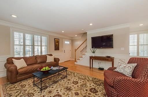 Stunning detailed design on all three levels of this 2012 three bedroom, 2.5 bath townhouse, in one of the prettiest, most convenient locations of East Arlington. Fabulous open concept first floor flooded with natural light. Luxurious top floor master bedroom sparkles with a gas fireplace, and bath with both a shower and jacuzzi tub. Spacious two car garage with room for storage will be much appreciated in challenging weather. Better than new, this beauty is loaded with additional new updates! Huge and lovely private back yard now boasts an irrigation system, careful landscaping, and is completely fenced in - ready for dogs, kids, or summer bbqs! High-end plantation shutters installed throughout the house, and the custom designed walk-in closet organization system in the master bedroom rivals none. Shops and eateries of both E. Arlington and Arlington Center are minutes away, along with easy access to the Mystic River, Bikepath, or the bus to Alewife or Cambridge.