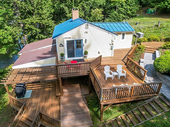 Spring is back & so is this adorable year round 2-story, Farmhouse style Lakefront home on beautiful Horace Lake. Stunning grounds on a .42 acre double lot with 202 feet of private water frontage. Enjoy year-round fun & adventures for kids of all ages with great swimming and boating all summer long. Powerboats are allowed for water skiing or cruising. Hop on your kayak or paddle board! Enjoy winters ice fishing, snowmobiling or shoeing. Brand new granite steps & retaining wall guide you to the front door where you enter the main level to be greeted by a spacious open concept living/dining room overlooking the lake. The enamel wood stove in the LR provides a cozy alternative to heating w/ the gas heater or the mini splits which also provide central air. The 1st floor offers a primary bedroom w/ views of the lake. The remodeled kitchen is well appointed w/ SS appliances. The 3/4 bath offers a large glass shower enclosure. The office offers high speed internet. Head downstairs to find a beautiful family room w/ sliders to a 16x28 covered screened in porch that over looks the lake. There are also 2 more bedrooms w/ full daylight windows. The mechanicals include newer 200 amp service & an on demand whole house Kohlar generator. The grounds are stunning w/ multiple decks, a new retaining wall a dock & a shed. Your private water front oasis comes fully furnished; boats included. Just minutes to Rt 114 & Sulley's Market.