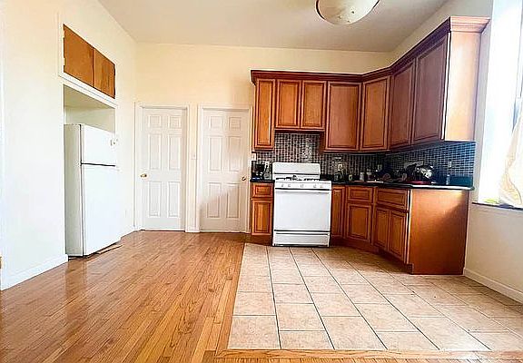 5BR / 1Ba apartment Brownsville choice huge 5 bedroom sunny apartment Thatford Avenue and Belmont Avenue, all renovated with cherry wood raised panel kitchen cabinets with formica counter top and tiled back splash, cherry wood flooors, recessed radiators, high ceilings, 8 foot tall double closets, circuit breaker switches inside apartment, fully tiled bathroom. Smoking allowed:No