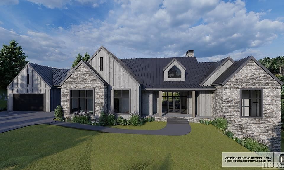 Custom luxury home with a relaxed modern rustic design featuring stunning views of Terrapin and Whiteside Mountain and Devil's Courthouse. This four bedroom home features glass sliding pocket doors that allow natural light to flood the space and open to covered porches that blend outdoor and indoor living year round. Design elements such as fireplaces, timber walls, Edison-style modern industrial light fixtures and rustic beams bring elements of nature into the home. This home is designed and being built by Loudermilk Custom Homes, known for a relentless focus on quality custom craftsmanship, transparency, and advanced smart home technology. Saratay Falls is a 20-lot community, located 6 minutes from downtown Cashiers, along the banks of Fowler Creek and the majestic 40 foot Saratay Falls.