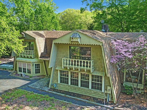 Nature Lover's Paradise! One-of-a-kind 4200 sq ft chalet nestled on over 2.5 secluded acres. Unique floor plan designed to take advantage of the pretty views of the the two ponds, fountain, and forest. Imagine enjoying an outdoor ice skating rink in the winter and watering hole in the summer! New roof, New boiler, HWBB 6 zone heat. Central air. Upstairs is the master BR suite, a princess suite and a second master with kitchenette. Ground floor apartment has full bath w/handicap shower, kitchenette, pantry, second laundry rm, living area with gas fireplace and garden views & sliders to patio. Main Fireplace in family rm. So much more! 1 hr to NYC; 12 mi to beaches. If you like privacy AND being close to amenities, this house is for you. AS IS SALE: Buyer responsible for building garage Ground floor is the on-grade basement. Aside from the apartment described, there is also the boiler room and a huge semi-finished workout/rec room (with door to where the garage would be.) Garage pad is concrete and large enough for 6 cars.