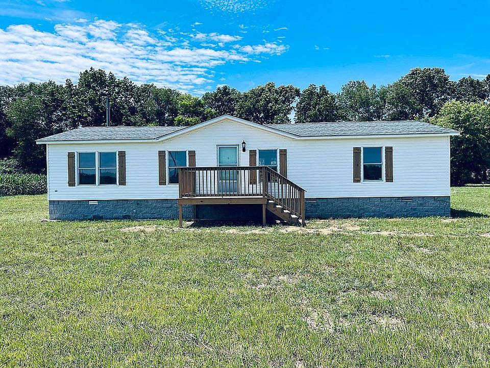 This home is move in ready, and has just been remodeled ,it has new lifetime flooring, a new kitchen with 10,000 worth of cabinets , new sink and faucet, new stove hood vent, new lights and plumbing. the house has new light fixtures and fans completely through, both bathrooms have new vanities "not trailer vanities", new toilets, new faucets for sinks and tubs and shower heads ,one has a new fiberglass tub and the other tub was refinished, the walls were refinished and painted along with the ceiling, all windows were cleaned and re sheet-rocked, new electric hvac , the roof was in great condition so repair needed, new water well with pump and all hoses and electric, new septic system, just had permanent foundation done with split face blocks, 3 new porches, new moisture barrier, new rear patio doors, all other door were taken down and refinished with there hardware,the actual address is 17 big springs terrace,lawrenceburg tn 38464