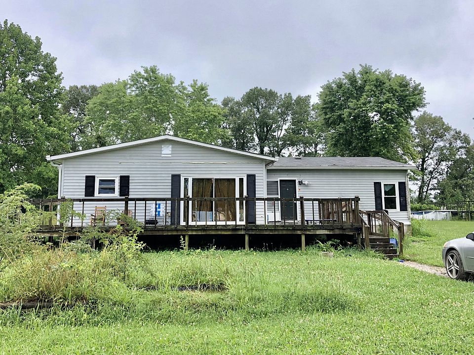 Great Investment opportunity! 5 acres with a 1500 sq ft. 3 bed 2 bath mobile home on concrete foundation. Open concept. Huge LR with tall ceilings. Would make a great rental property. Home in disrepair, needing new carpet, paint, hvac, front and back decks repaired, some walls patched...etc. 2nd bath completely gutted. Cash only. Need a quick closing!
