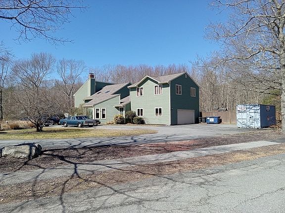 Unique 4 bedroom 2.5 bath contemporary that offers a private 1 bedroom, 1 bath suite above the garage with a new Mitsubishi ductless system. This home has so many wonderful upgrades which include: roof, radon system for the well , well pump, garage Fagan doors, lifetime water heater, 1/2 windows replaced, skylights, MA save for insulation and more! The yard is totally fenced in as it sits on a corner lot with a second story private deck from the primary suite . The living room is sunken with an open floor plan to the dining area. The kitchen is tucked away from the grandiose entertaining arena as it also has a breakfast nook for additional guest and family seating. The flooring is a mix of laminate, bamboo tile and carpet. Whether you work from home, have visitors that need some privacy or simply embrace an custom contemporary home, this home checks all the boxes! Country living minutes back to the highway.