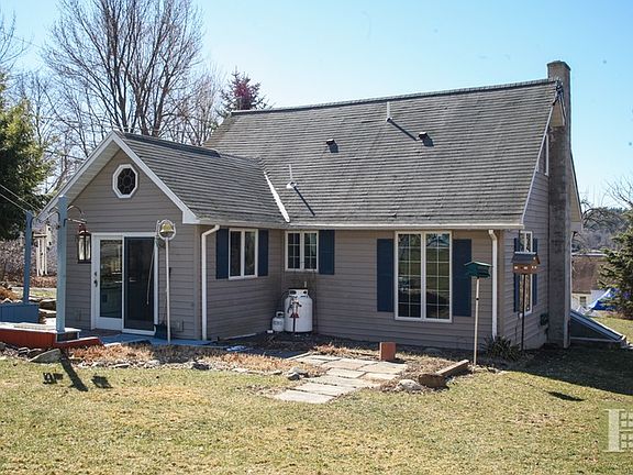 Traditional Copake lake semi private cottage from the 30s. You step in and it feels like you are in the sea captain's house. Lots of potential here for the weekender or full timer. The wonderful stone fireplace with Harman pellet stove insert, vaulted ceilings and maple floor, 3-zoned oil/wood heating, the home is lovingly cared for and perfectly sited to maximize exposer to lake view. 2 BR, 2 BA and 2 car garage with storage above, space for boat, chicken coop/vegetable garden and best of all lake rights with shared dock and great front porch to kick back and enjoy. $249,000