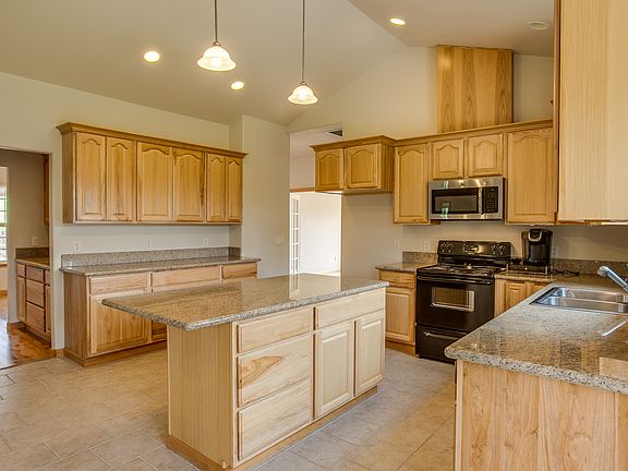 Lovely custom built 2247 sqft ranch style home with triple attached garage and 36'x30' detached shop with heat and air on 1.03 acre lot. This beautiful quality built home with hardy plank siding features 9' ceilings, Austrialian Cypress wood and tile floors and hickory cabinetry throughout! The highlight of this home is the beautiful kitchen/dining/family area. Spacious eat-in kitchen with large island.