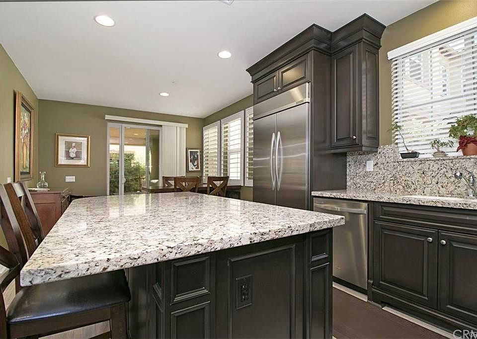 Upgrades are everywhere in this 2015 built home. With an open concept first floor that includes a bedroom and bathroom this 4 bedroom, 3 bath, home has spared no expense with its endless upgrades and finishes. The kitchen opens up to the living room and features a big beautiful center island with upgraded granite, built in 42" refrigerator, granite back splash and upgraded cabinets that extend to the ceiling. The plantation shutters, upgraded laminate and carpet flooring and ceiling fan all tie into the kitchen to provide a model quality great room. Additional upgrades continue upstairs including plantation shutters, ceiling fans in every room, custom closet organizers in every bedroom, upgraded tile and granite throughout the master bath. Once outside, the upgrades do not stop. The California room features upgraded tile, low maintenance turf, outside lighting, drip system and built in bbq. Located at the end of a quiet street this house has one of the best locations in the track. Don't forget, Baker Ranch has no Mello Roos low HOA's and endless amenities that include swimming pools, walking trails, outdoor entertainments, sports courts, etc.. You don't want to miss this one!