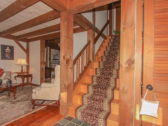 GORGEOUS COLONIAL ! Custom built and cherished by the original owner this home exudes quality and is lovely post & beam construction. Exposed wood beams, brick detail and wood flooring. First flr with living room, dining rm and large front-to-back open plan Great room with over-sized brick fireplace and many windows. Kitchen has been just upgraded with new s/s appliances & custom cabinetry. First flr den/entry vestibule with charming brick fireplace and access to the lovely rear patio and private back yard. Second floor is full of surprises ! Master suite with bath, two closets, laundry, wood floors, exposed beams spiral staircase to a wonderful loft space. Two additional bedrms, one with cathedral ceilings and loft space. Full hall bath. Upstairs landing with exposed brick wall. Additional living space over the two garage is an ideal home office, artists studio or game room. Mechanical components recently upgraded (see list attached).