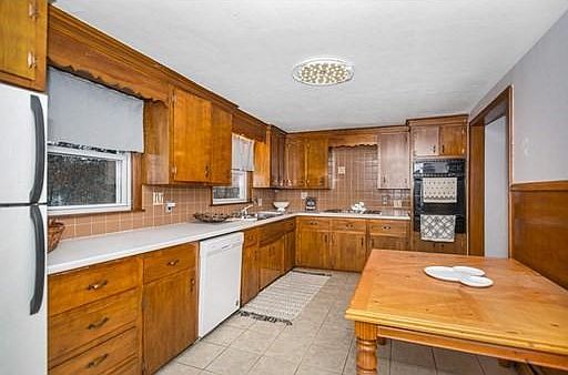 This Lowell Ranch is larger than most and tucked away as the last house on a dead-end road in a peaceful neighborhood setting. Now is your chance to build some sweat equity. As you make your way through the home, you are greeted with a fully applianced eat in kitchen with a full bathroom off the hallway! The interior has been freshly painted throughout and is a blank slate ready for your finishing touches. There is a large, 19x13 living room on the first floor with plenty of natural light. All of the bedrooms feature overhead lighting and a double closet. Hardwood flooring can be found throughout most of the home and even underneath the laminate flooring in the 2nd bedroom! Downstairs, you will find a partially finished basement, with tall ceilings and a dry bar. The deceivingly large backyard is already fenced in for your 4 legged friends. With a little TLC this house can be transformed into YOUR new home in no time! Showings begin Friday.