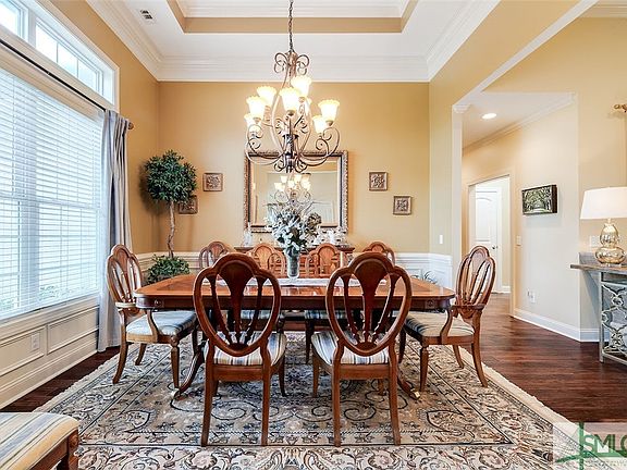Fabulous open floor plan on culdesac with peaceful front water view. 4 split bedrooms on main including owners suite and 3 full baths. Large bonus room up with full bath and huge walk in storage. Gorgeous hand scraped wood floors throughout, Granite/stainless kitchen with beautiful glazed cabinets. Expert finishes throughout. Fenced backyard w/powered cookhouse, pavers, covered porch and private landscape buffer. Southbridge, Savannah's most desired golf, swim, tennis/pickle ball and fitness community is only a few minutes from historic downtown Savannah, 20 minutes from Gulfstream and 25 minutes from the new Hyundai plant. All these amenities are optional membership.