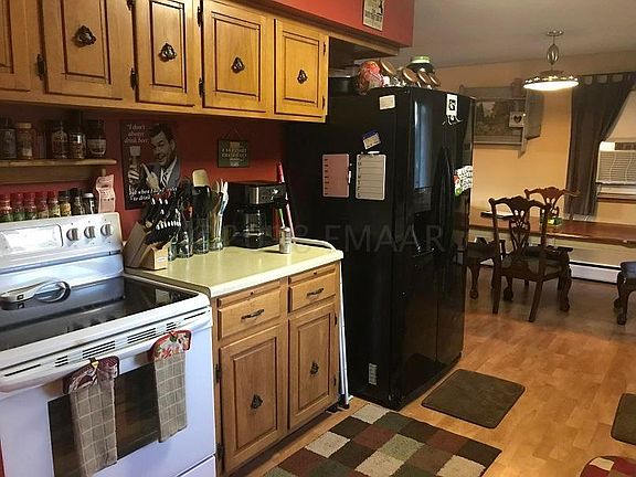 Welcoming 3 bedroom 2 bathroom property! Main floor offers 3 bedrooms, 1 full bathroom, living room, dining room and kitchen. Walk-out basement offers additional living area and 3/4 bath. Convenient vinyl siding and window A/C unit for your comfort. Spacious backyard in serene neighborhood. Includes kitchen appliances and storage shed. Attached finished singele stall garage.