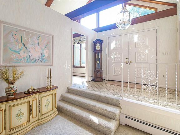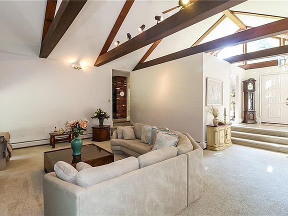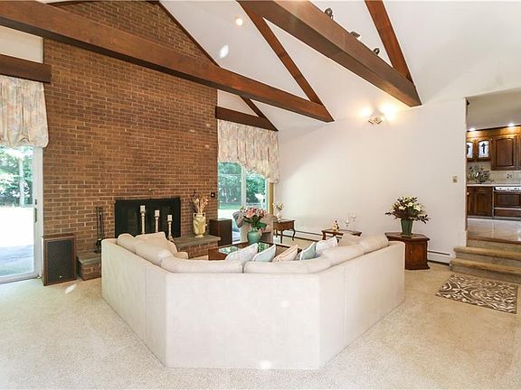 Picture perfect, park like level 1.3 acres in desirable Huntington location. Double door entry to foyer leading into dramatic sunken living room with vaulted ceilings, wet bar and floor to ceiling brick fireplace. Just waiting for you to entertain your friends and family. Spacious kitchen with custom made cabinets, Artisan hand painted back splash, ceramic tile floors, newer double oven, newer Dacor 5 burner cook top, all cabinets have pull out shelving. For your families privacy the 4 bedrooms are on the left wing of the home. Master bedroom with full bath with Corian counter. Three other bedrooms and 2 full bath.