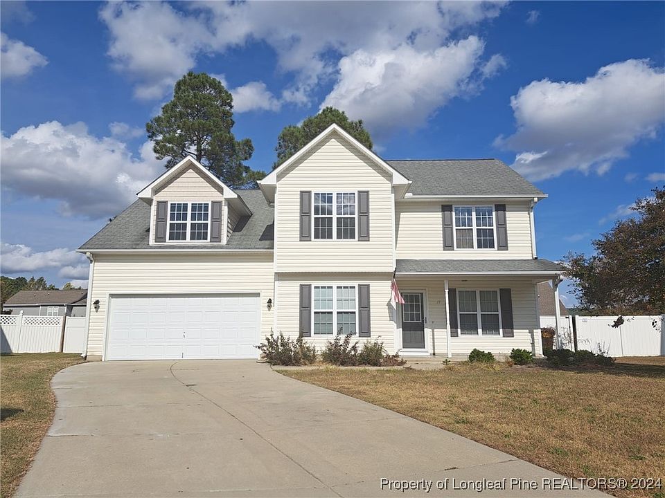 Welcome to this charming 3-bedroom, 2.5-bath home in a quiet cul-de-sac! The inviting living room features a cozy fireplace, while the kitchen boasts stainless steel appliances, a breakfast nook, and a formal dining room perfect for entertaining. A convenient half bath is also on the main floor. Upstairs, you'll find three bedrooms, including a spacious primary suite with a full bath, an additional full bath, a bonus room, and a laundry area. Enjoy the fenced yard with a deck great for outdoor gatherings! Pets are welcome upon approval. This home is ideally located for easy access to Fort Liberty, Fayetteville, and Sanford. Don't miss out!