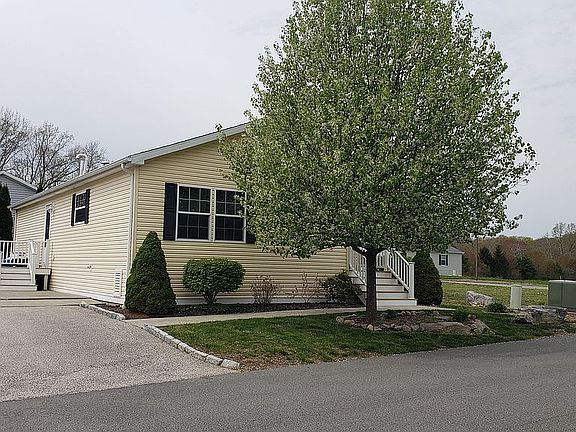 1274 sq ft ranch home with 3 bdrs 2 baths your new home! Fully applianced kitchen, gas heating and cooking. There is a concrete patio off the back perfect for relaxing with family and friends. Washer and dryer hookups. Forced air heating and A/C. Private shed outside on lot. This pleasant home is located in the quiet age restricted (55 years and older), community of Stonegate Village. There is a beautiful community center on premises along with a fitness center. Easy access to I-95. 12 minutes from Mystic. Only 5 miles from Foxwoods. A small dog or cat will be considered. Land lease of $505/mo covers mowing of your lawn, and snow removal from your driveway and walkways in the winter. Please call Steve (number listed in images) for more information or to make an appointment to view this home. If images aren't showing you can access them here: https://docs.google.com/presentation/d/1ZKPsYNRXe76wMkZJ3LwNIG2tq9NwB2almzCf2RvvjPM/edit?usp=sharing
