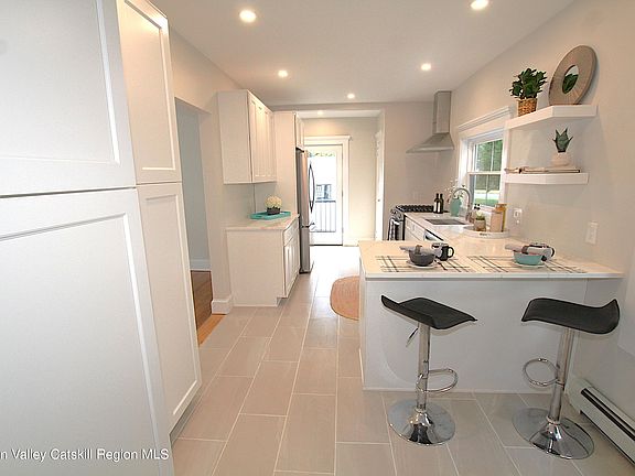 Beautifully renovated three-bedroom home just minutes from Stockade District in Kingston, NY. New Roof, New Windows, New Kitchen Cabinets and Stainless appliances. Heat and hot water are provided by a brand new, efficient and on-demand system. New 200 Amp electric Service also installed. Hardwood floors throughout with newly tiled kitchen and bathrooms. Large, bright and airy rooms with possible office space off main bedroom. Two-car garage and lots of storage space in addition to the finished attic. Plenty of outdoor space and easy drive-thru driveway for convenient off-street parking. This fully renovated home is located near uptown shopping, schools, major roadways and to all that Kingston and the Hudson Valley has to offer. It's a must see.