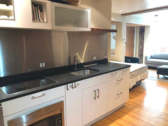 Basement level studio. FULLY FURNISHED. Quietly located between Charles and Spruce Street and just one block from Beacon Street. This is truly a Beacon Hill hidden gem. This pied-a-terre offers high end, under the counter, stainless steel appliances. GE Profile oven. Jenn Air mini refrigerator. Glass top burners blend beautifully into the Granite countertop. A stainless-steel back splash and custom cabinets finish off this well thought out kitchen area. Lots of exposed brick along with recessed lighting and exposed ceiling beams give the entire apartment a warm and cozy feeling. The well-designed bathroom has a fully tiled shower area with built-in seating. Custom built-ins, a California closet, Central A/C, and Hardwood floors complete this impressive package. There is also a washer/dryer next to and exclusive to this unit. Gas heat and hot water is included. Tenant pays electric. WIFI also included. Please NO UNDERGRADS.