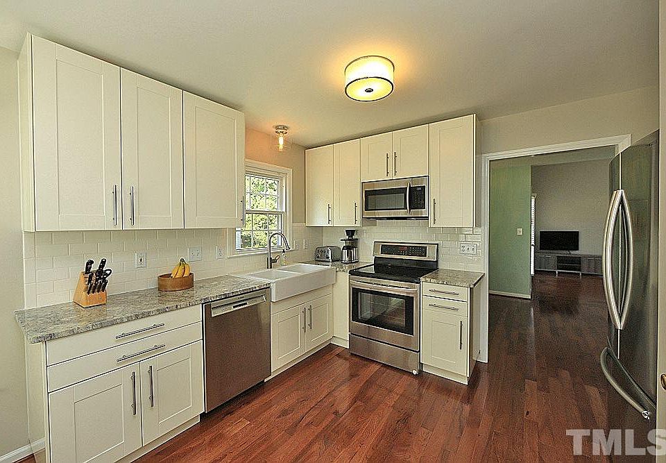 Gorgeous home in the highly desirable Woodlake neighborhood! *Stunning kitchen remodel w/new white cabinets, granite, sink & more 2015* Beautiful new hardwood floors throughout main level 2015* 10 ft. ceilings in the family room*New vinyl windows 2017 (except for just a few)* Designer powder room* New roof 2018* New deck 2016* Fiber cement 2007* Fenced backyard* Water heater 2015* Garage Door 2018* Lake & walking trails, pool, clubhouse, playground incl. in low HOA dues* Convenient to Duke, UNC & RTP!