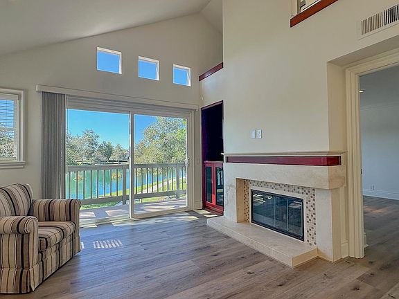Welcome to your lakefront dream home in Rancho Santa Margarita! This fully remodeled 1,143 square foot upper level condo, offers a comfortable and modern living space for those seeking a peaceful retreat. With a spacious loft, 2 bedrooms and 2 bathrooms, this home is perfect for anyone looking to settle down in a serene neighborhood. Expansive lake views provide the backdrop from the living and dining rooms, primary bedroom and loft. 2 balconies provide the perfect space to relax and enjoy the lake, trees and wildlife. Directly adjacent to the lake walking path and a quick 5 minute stroll to the Mercado Del Lago with stores, restaurants, and more. A convenient walk to Trabuco Mesa Elementary school Trabuco Mesa Park or the Lago Santa Margarita Beach Club. High end improvements can be found throughout the property. Featuring an open floor plan with vaulted ceilings that maximize the available space. The designer kitchen includes stainless steel appliances, stone countertops, accent lighting and open vaulted ceilings. Dishwasher, refrigerator, washer and dryer are included. Directly adjacent to the community pool and spa. The 2 car garage includes cabinets and overhead storage. The house is equipped with an air conditioner to ensure year-round comfort. Don't miss out on this incredible opportunity to call this house your home. This property won't last, contact us today to schedule a viewing and experience the tranquility of Rancho Santa Margarita living for yourself! 12 months, refrigerator, washer and dryer included