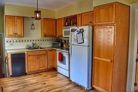 This charming Cape Cod boasts 1,475 Sqft and offers a FIRST FLOOR MASTER and a second bedroom on the first level as well as 1 bathroom, while the second level has two very large bedrooms. This home is the perfect home for entertaining, offering a somewhat open concept with a large eat in kitchen and a huge living room attached. Enjoy the backyard patio and fire pit on the beautiful summer nights, or curl up next to the wood-burning fireplace on the cold winter evenings. This home is a MUST SEE for all, especially since there is a home warranty!