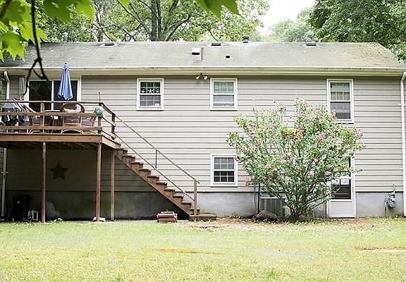 Highest and Best by 4:00 Monday August 21. Stately pillars and grand veranda welcome you to this plantation style split entry. Open floor plan takes you from living room with bay window to dining area with sliders to deck keeping you connected to the (oh so private) outdoors backing up to the woods. The kitchen has painted white cabinets, granite countertops and beautiful large tile flooring that reaches back out to the dining area. You decide the configuration....do you need 3 bedrooms up and lots of recreation area or an office down or would you like to have two separate living arrangements with a bedroom down and two up with a main floor office or den? Brick fireplaced family room. Updated heat and central air. Feel tucked away in this sanctuary yet minutes to the train (2.6 miles) and Route 95 (5.2 miles)