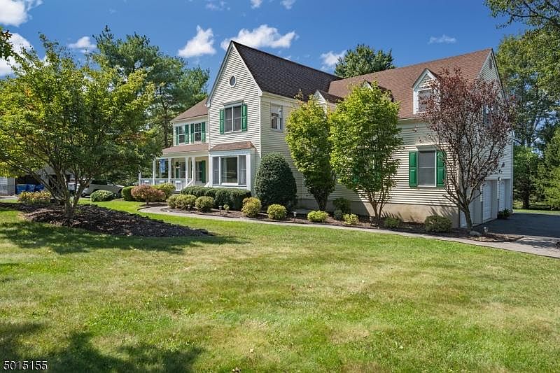 Welcome to this elegantly renovated 5BR 2.5BA custom Farm house colonial in sought after "Woodside Farms" situated on a quiet street surrounded by mature landscaping with great sunset views, backs to parkland. Updated Kit offers a Breakfast area overlooking sliders with views to the yard; Breakfast bar, Updated Cabinetry & SS appliances (included); NEW: Refrigerator, Microwave & Lighting fixtures; cathedral ceilings, sunny Skylights, Bright 2 story FR, stone hearth woodburning FP, NEW stylish laminate flooring; Bright Dining Room great for holiday gatherings; Spacious LR with a large picture window overlooking the gorgeous front grounds & wrap around front porch; NEW Baths: featuring designer vanities, faucets, new ceramic tile flooring; Anderson windows; Den; Full Fin Bsmnt; 3 car garage; Above Ground Pool.