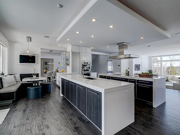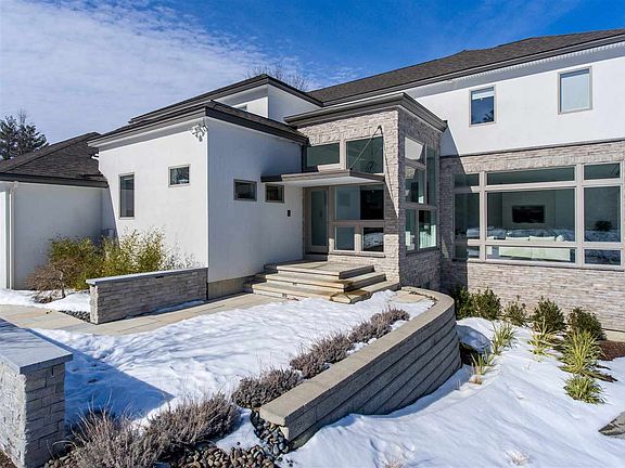 Custom, Contemporary hilltop Cote d'Or residence, beautifully sited to maximize panoramic city and mountain views. Expansive windows afford natural light at every turn. Stunning foyer with custom cut out windows and open concept floor plan with maple hardwoods plus baths with radiant heat to warm striking marble floors. Modern kitchen with double islands, Caesarstone quartz countertops, Miele appliances plus convenient wet bar and wine fridge, perfect for entertaining. Kitchen glass wall opens up to screened patio, allowing for lovely indoor/outdoor lifestyle. Large formal dining room with tray ceiling. Living room features breathtaking views and cozy gas fireplace, perfect for New England winters. First floor also showcases study with generous built-ins, private first floor guest suite and essential mudroom. Chrome and glass staircase lead to three additional, spacious bedrooms highlighted by a glorious master suite with gas fireplace, extraordinary walk-in closet/dressing room and spa-like master bath. Fully finished lower level with full size tennis backboard offers plenty of space for use as an exercise room, family room or play room. Fenced grounds offer gas firepit, pet kennel, outdoor Har-Tru tennis court and landscaped lot with irrigation system. State-of-the-art smart home technology. This home is truly exquisite.