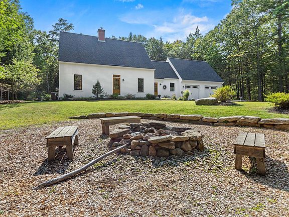 Welcome home to this spectacular farmhouse in a private country setting, yet 10 minutes to Portland! Meander up the private road and enter the oasis that is 19 Burton Way! Exterior complete with two large fire pit areas for entertaining, basketball on the expansive driveway, rear deck overlooking the back yard, hot tub, chicken coop, storage shed, wood shed, and beautiful raised bed gardens. Inside is equally impressive with rustic wide pine flooring, open custom kitchen with cathedral ceiling and custom built-ins. A woodstove insert with a cozy sitting area is the perfect place for a book on a cold winter night. Sunny dining space with plenty of room for a large gathering. A spacious living room and a spare bedroom complete with a custom murphy bed complete the floor. Over the garage is a large finished room with unlimited possibilities. The second floor has two good sized bedrooms with a shared bathroom plus a generous primary suite with an oversized tile shower, double vanity, walk-in closet plus a second closet. Solar panels, heat pump hot water and newer FHA/heat pump heating and cooling system insure consistent and cost effective living. What are you waiting for? Schedule your private showing today! Seller uses as 4 bedroom, septic is 3 bedroom.