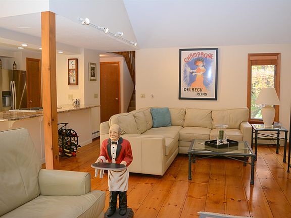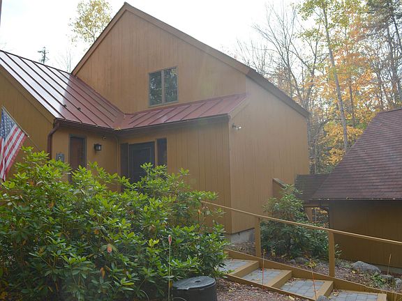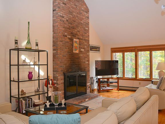 Conveniently located near the West Cove of Eastman Lake. Come escape to this private wooded setting and relax on the large deck with bright and sunny exposure. This 3-bedroom, 2-bath, contemporary home features a desirable Parkhurst Floor Plan. The great room with beautiful wood floors and a floor-to-ceiling brick fireplace opens to a large wrap-around deck. Enjoy the delightful features of the newer kitchen with granite countertops, breakfast bar and stainless steel appliances. Primary bedroom with its own slider to the deck and laundry room are both situated on the main level. Upper level has 2 more bedrooms, another bathroom and a loft area. Skylights throughout provide lovely natural light. Partially finished lower level walkout with a concrete floor offers endless possibilities for you to customize the space for your needs. Complete with a 2-car garage with entry to lower level and a paved driveway. On community water and sewer. All this is ideally located within walking distance to tennis courts and West Cove beaches. Eastman offers lake activities, golf, cross-country ski trails, snowshoeing, hiking, tennis, an indoor pool and exercise facility and so much more! Easy access to I-89 and the Upper Valley and Dartmouth/Lake Sunapee Region.
