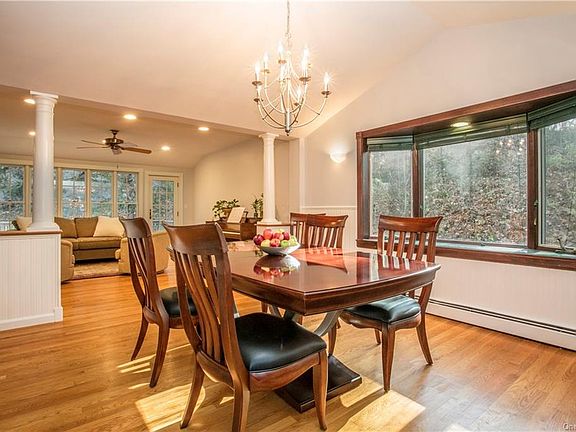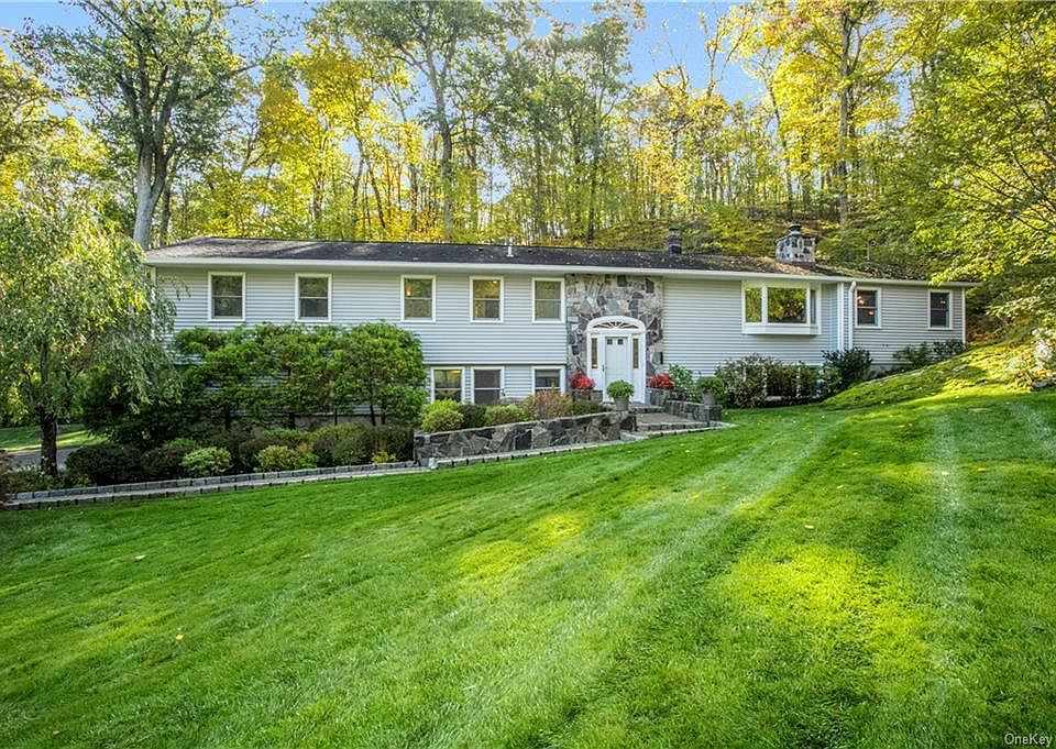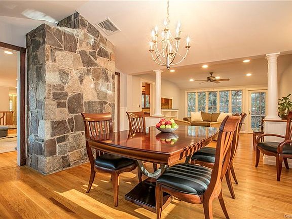Lovingly maintained. Expanded. Spacious rooms. Front-facing living room w/bay window & stone wood-burning fireplace. Dining room w/cathedral ceiling. Family room w/French door to deck adjoins eat-in kitchen w/cherry wood cabinetry w/pull-out shelving; granite countertops; tumbled marble tile backsplash; GE, KitchenAid & LG appliances. Breakfast area w/sliding glass door to large rear exterior deck for easy grill access or alfresco dining. Main level primary bedroom w/updated bath, walk-in & double-door closets. Three more main level bedrooms w/organized closets. Updated hall bath & powder room. Lower level houses family room w/built-ins; paneled office w/French door & built-in bookcases; play/au pair room w/closets; full bath w/shower; wainscoted mud room w/bench, hooks & closet; laundry/mechanicals room; garage access. Central A/C. Propane-fueled Generac 22kW whole-house standby generator. Lovely landscaping & plantings. Plenty of lawn for play. Nice neighborhood for a quiet stroll.
