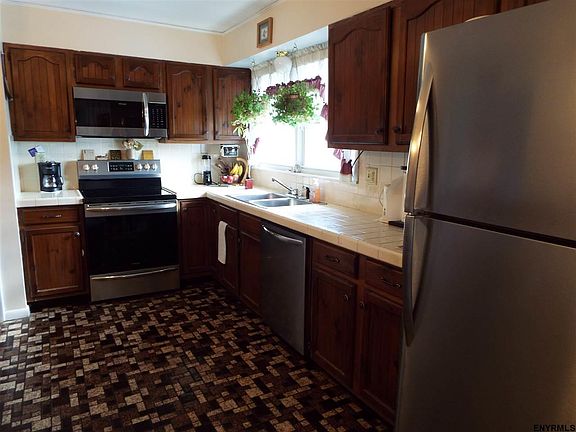 Well maintained R/Ranch sits on quite dead end street only 10 minutes to downtown Albany,and is both convenient and walking distance to many amenities and a bus-line. This home features a newer roof, new appliances,solid tiled floors in the Kitchen and entrance way . A large family room for entertaining with a gas fireplace, that leads out to the deck and sun filled manicured and Fenced yard. 1 car garage in the East Greenbush schools district, low utility bills due to the Solar power panels, Go Green .