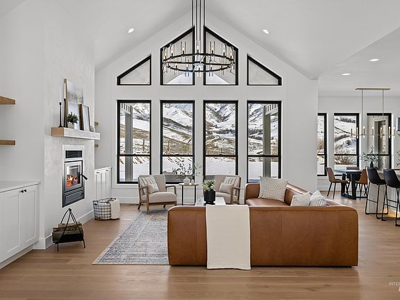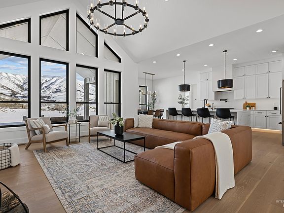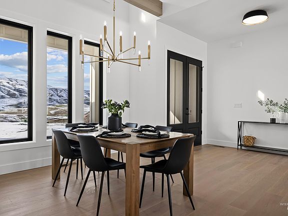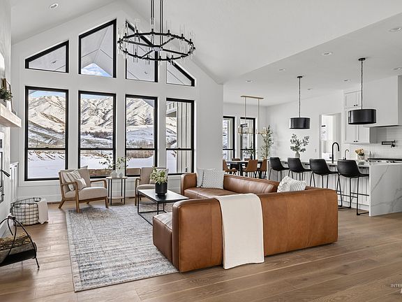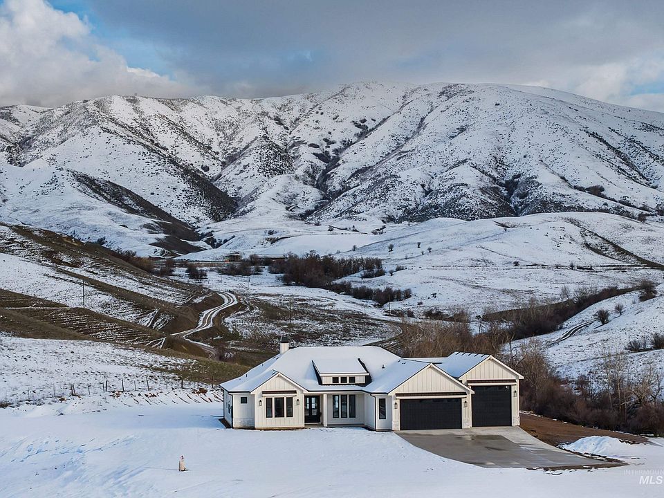 Custom built modern farmhouse on 3.3 acres w/ breathtaking views of the mountains. This single level home features a bright open floorplan showcasing extraordinary craftsmanship, & attention to detail. The great room boasts soaring ceilings w/ a serene backdrop. Quality finishes include engineered hardwood flooring throughout, high-efficiency fireplace, quartz countertops, hardie siding, & more! Gourmet kitchen boasts an oversized waterfall island, custom double stacked cabinetry w/ under cabinet lighting, top-of-the-line Kitchenaid appliances, pot filler, & a walk-in pantry. Private master suite featuring a spa-like bath w/ a freestanding tub, curbless tile shower, separate vanities, & a private patio access. This home features an oversized garage plus a dedicated 42' RV Bay w/ space for all your toys & recreational items. Relax & enjoy watching wildlife & the tranquility & privacy that mountain living brings from the covered patio. Easy access to some of Idaho’s best adventures, & only 30 minutes to Eagle!