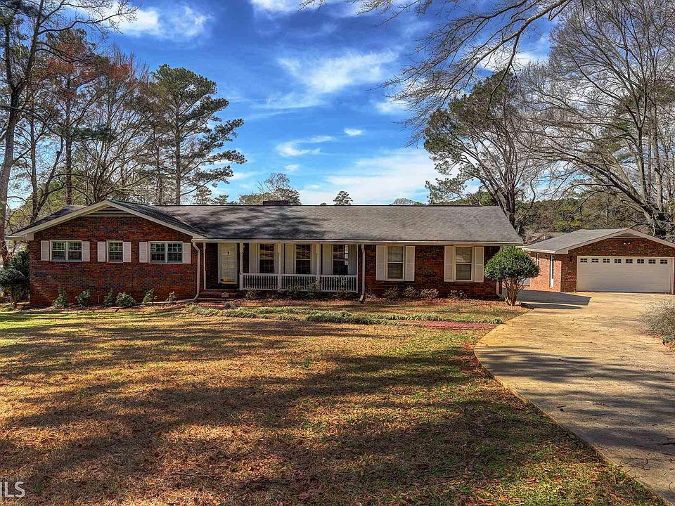 LOOK AT THIS LAKE VIEW! Wonderful 1966 4-Sided brick ranch home on over 1.6 acres on the lake! The home has new flooring, upgraded counter tops, all appliances included, HVAC in 2016, In-law suite in lower level. Two wood-burning fireplaces, one in the family room, one in the lower level. Sit out on the deck and watch the blue heron. Move in as-is or has great potential for a modern remodel! Detached garage. One of the best views of the lake (Rock Lake)! Bricks in walkway from downtown Newnan. Old growth camellia, holly, azalea, Martin bird houses by the lake. Come see it today! Call the Realtor!