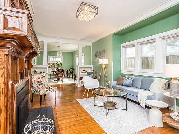 Discover the allure of historic Irvington with this charming 3-bedroom bungalow. As you enter, you'll be greeted by the inviting living room featuring a gas fireplace, oak mantle, and original hardwood floors. The spacious dining room is ideal for hosting gatherings and showcases built-in shelving. The home offers a convenient Jack & Jill full bath on the main level. The well-appointed kitchen boasts tile floors, solid surface countertops, new sink, and a stylish backsplash. Retreat to the upper-level master bedroom with its spacious bonus room, ample closet space, and a full bath complete with new tub/shower. Enjoy the privacy of the fully fenced yard, deck, and classic front porch. Take full advantage of Irvington's walkability and explore all the neighborhood has to offer. Don't miss this unique opportunity to own a property that showcases old-world craftsmanship and style at its finest. Current seller upgrades include: Gas fireplace insert with remote ($4000.00), Premier deck coating ($3000.00), Air ducts cleaned ($600), Back stairs and bannister replaced ($2000), New windows lower level by Andersen ($23,000), New back door ($9000), Core Concrete Construction, side sidewalk ($6000), Upstairs bath install ($1000), New upper gutters ($10,000), Kitchen counter, sink, solid surface ($3009), New water heater ($300), New water softener ($1000).