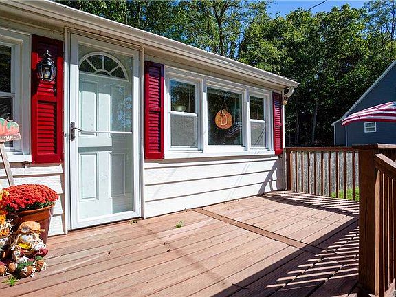 Charming updated ranch on flat spacious park like property with room for expansion. Enjoy relaxing days on the welcoming front porch! Many updates throughout, custom kitchen cabinetry, butcher block countertops, updated appliances, breakfast-nook or possible laundry area, freshly painted, recessed lighting, new flooring throughout, updated bathroom with tub and new vanity with granite top. Full basement with outside entrance, great for storage, new hot water heater, laundry and area for workshop. Build many memories while entertaining on the large deck conveniently adjacent to kitchen. The tranquil tree lined property is enclosed which allows for your own private retreat! Great opportunity, just move right in!!!!