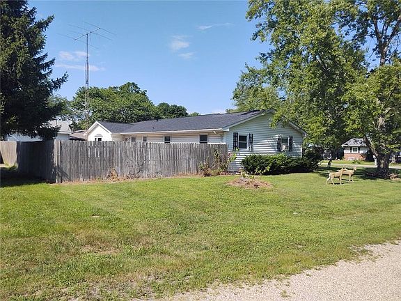 Ranch home on a corner lot in a great small town. This home features a large, open living room, kitchen, and family room area. Currently, this home is two bedrooms, but could be three if the laundry is relocated. Hall bath is a good size with a double vanity. Laundry room has two large closets for plenty of storage. The backyard features a deck and is surrounded by a wooden privacy fence. There is also a shed/workshop with a loft on the property. This home is being sold "as-is" and does need some work. Call today to schedule a showing!