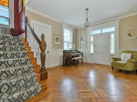 The picturesque Shapleigh-Burleigh house, one of the finest homes on bucolic Carruth Street, is available for sale in the first time in 30 years. Designed by preeminent Boston Architect, John Fox, this lovely home has undergone a thorough restoration to reveal ornamental details and intricate overlays. Enchanting with perennial gardens, flowering trees and an impressive White Oak in the front yard. A magnificent foyer leads to a grand staircase anchored by a stained glass window. Charming period details throughout: original hand hewn parquet floors; pocket doors; high ceilings; fireplaces and light filled window bays . Living and dining room designed for entertaining a crowd. Spacious kitchen with a custom built-in desk /office area. Six generously sized bedrooms on the second and third floors. Additional attic space on third, offering great potential for a Master Suite or family room. Only a short walk to Ashmont Red Line T and local eateries, bars and seasonal farmers market!